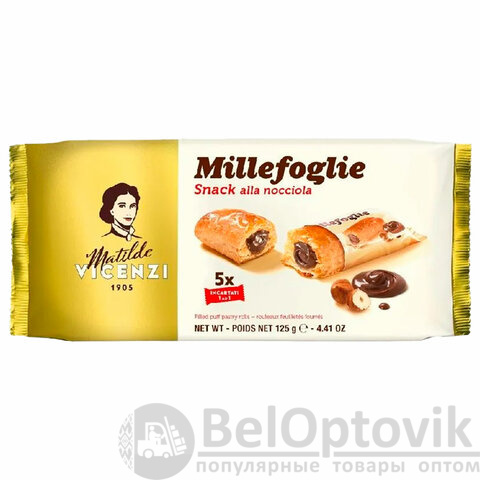 Печенье слоеное MATILDE VICENZI – это ароматный десерт с нежнейшей начинкой из фундука. Он готовится из мягкого слоеного теста по оригинальному рецепту.