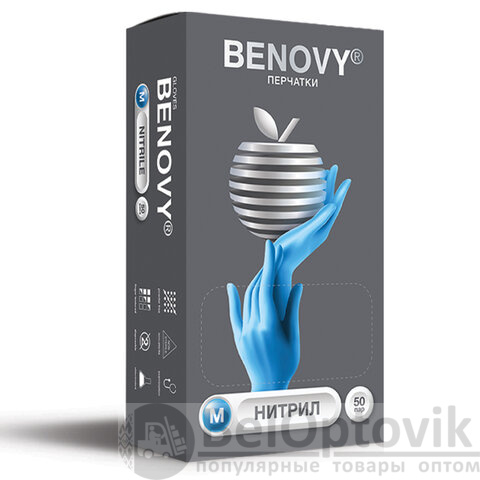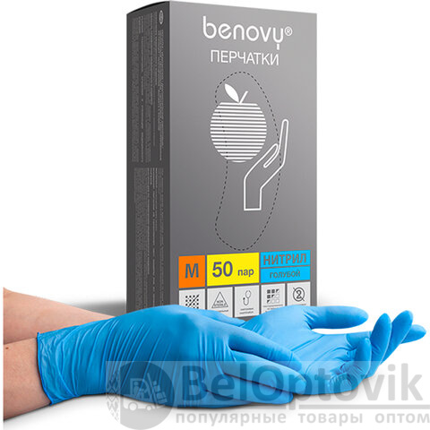 Перчатки нитриловые смотровые 50 пар (100 шт.), размер M (средний), BENOVY Nitrile Chlorinated