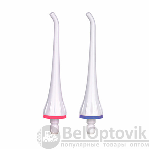 В комплекте с ирригатором поставляются 2 сменные насадки с разноцветными метками для двух человек. Сменить насадку очень просто с помощью специальной кнопки.