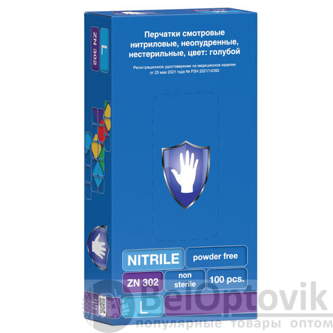 Перчатки нитриловые смотровые 50 пар (100 шт.), размер L (большой), голубые, SAFE&CARE, ZN302