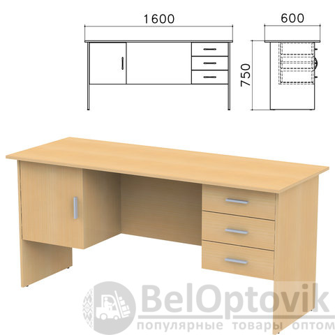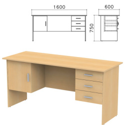 Стол письменный "Канц", 1600х600х750 мм, 2 тумбы, комбинированный, цвет бук невский, СК29.10