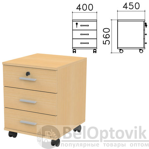 Тумба подкатная "Канц", 400х450х560 мм, 3 ящика, замок, цвет бук невский, ТК29.10