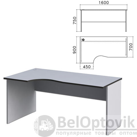 Стол письменный эргономичный "Монолит", 1600х900х750 мм, левый, цвет серый, СМ7.11