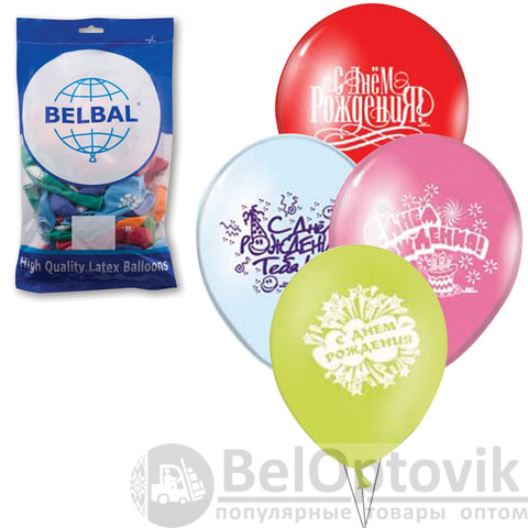 Шары воздушные 12" (30 см), комплект 50 шт., 12 цветов, 8 рисунков "С ДНЕМ РОЖДЕНИЯ", в пакете, 1103-0081