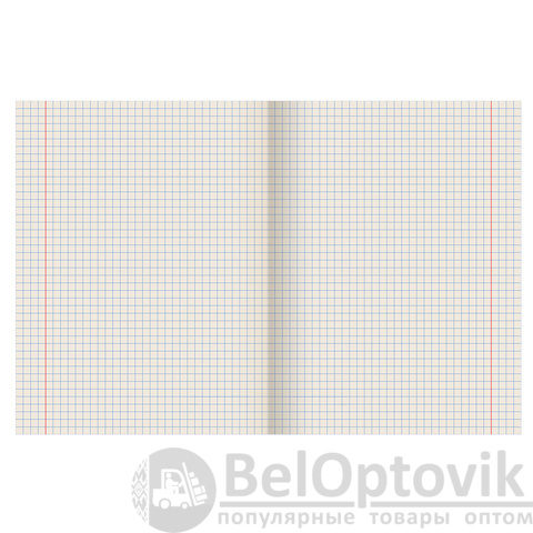 Внутренний блок 18 листов и плотностью 60 г/м2 из офсетной бумаги с серым оттенком (белизна 80%) имеет линовку клетку с полями. Обложка изготовлена из офсета плотностью 80 г/м2. Скрепка надежно скрепляет листы между собой.
