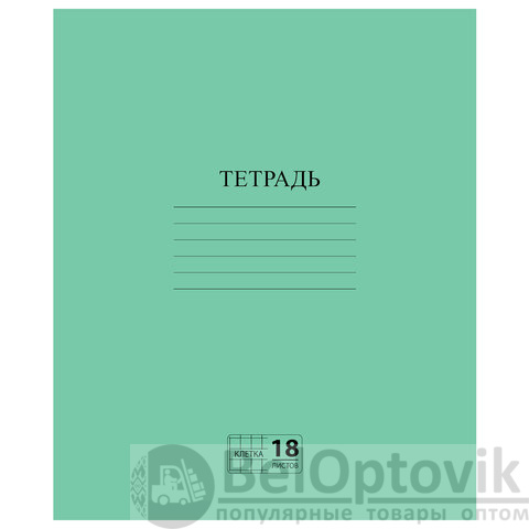 Тетрадь ЗЕЛЁНАЯ обложка 18 л., клетка с полями, офсет №2 ЭКОНОМ, "ПИФАГОР", 104986