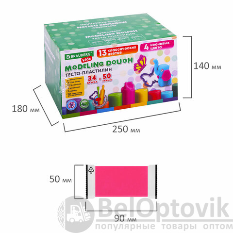 Пластилин-тесто BRAUBERG KIDS – это пластилин на растительной основе с мягкой текстурой и безопасным для детей составом. В набор входят 17 ярких цветов по 2 бруска: фиолетовый, оранжевый, белый, черный, красный, синий, изумрудный, желтый, неоновый голубой, неоновый салатовый, неоновый желтый, неоновый розовый, серый, салатовый, мятный, фуксия, бордовый. Цвета можно смешивать между собой и получать новые оттенки.