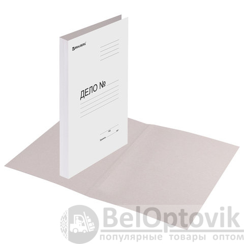 Имеет надпись "Дело №" на обложке. Папка стандартного формата А4 вмещает до 200 листов. Изготовлена из мелованного картона плотностью 280 г/м2. Отсутствие скоросшивателя позволяет не портить документацию дыроколом и при этом сохранить ее от деформации. Упакована в крафт-бумагу.