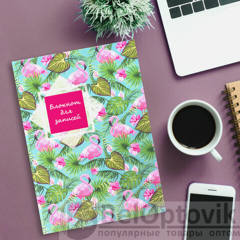 Блокнот БОЛЬШОЙ ФОРМАТ (215х295 мм) А4, 128 л., твердый, клетка, STAFF, "Фламинго", 111594