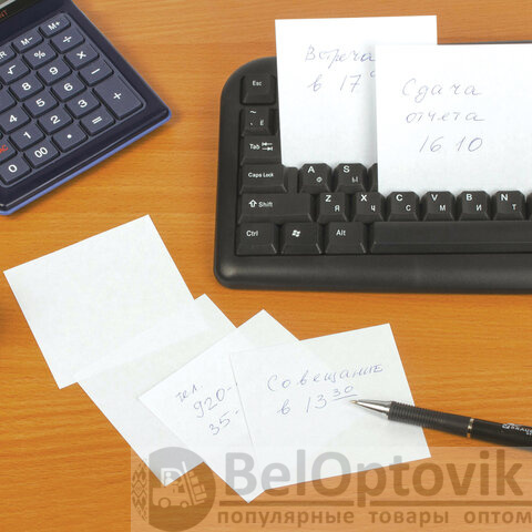 Блок высотой 8 см сложен из квадратных листов размером 8х8 см. Листы изготовлены из высококачественной офсетной бумаги плотностью 65 г/м2 и белизной 90-92%. Блок для записей подходит для письма любыми типами ручек и карандашей. Поставляется в плотной термоусадочной пленке, защищающей при транспортировке.