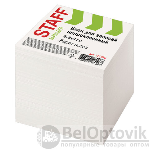 Блок для записей STAFF непроклеенный, куб 8х8х8 см, белый, белизна 90-92%, 111980