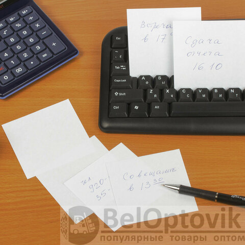 Блок высотой 8 см сложен из квадратных листов размером 8х8 см. Листы изготовлены из высококачественной офсетной бумаги плотностью 55 г/м2 и белизной 70-80%. Блок для записей подходит для письма любыми типами ручек и карандашей. Поставляется в плотной термоусадочной пленке, защищающей при транспортировке.