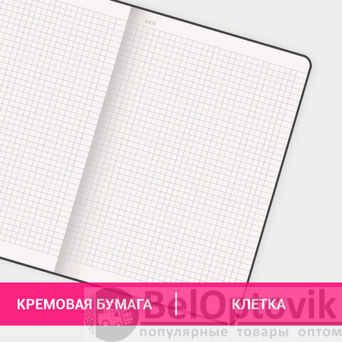 Твердая обложка стилизована под "классическую кожу". Имеет закругленные уголки, подходит для горячего тиснения и имеет резинку-фиксатор, благодаря чему не раскроется в сумке или портфеле и листы не помнутся. На внутренней стороне задней обложки есть декоративный конверт для разных мелочей в виде визиток, напоминалок или других милых и полезных мелочей. 96 листов позволят зафиксировать большой объем информации. Линовка блока в клетку (5х5 мм) дает возможность аккуратно заполнить цифровые значения, а также нанести чертежные зарисовки. Внутренний блок выполнен из офсета цвета слоновой кости плотностью 80 г/м2 и крепится к обложке с помощью книжного переплета. Дополнением является закладка-ляссе, с помощью которой при необходимости можно быстро открыть нужную страницу. Формат блокнота В5 (180х250 мм) позволит владельцу поместить его в кейс или сумку.