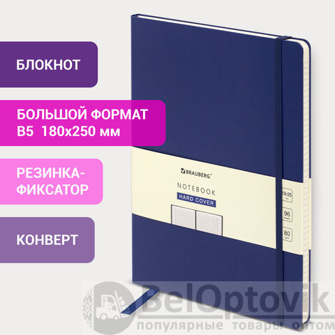 Блокнот БОЛЬШОЙ ФОРМАТ (180х250 мм) В5, BRAUBERG ULTRA, балакрон, 80 г/м2, 96 л., клетка, темно-синий, 113061