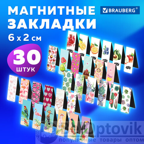 Закладки для книг МАГНИТНЫЕ, "MIX", набор 30 шт., 60x20 мм, BRAUBERG, 113175