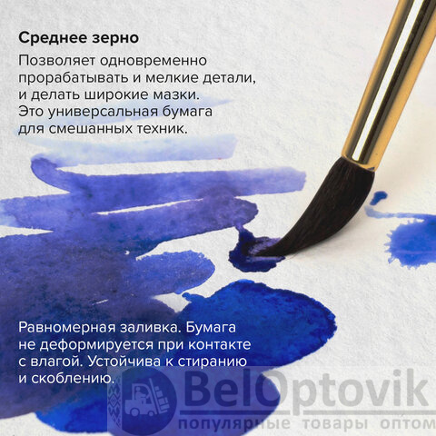 Планшет для акварели с профессиональной импортной бумагой плотностью 300 г/м2 из 100% целлюлозы. Блок проклеен с 4-х сторон, надежно фиксируя рабочий лист. Предусмотрен непроклеенный уголок для более легкого отделения листа с готовой работой (рекомендуется отделять листы канцелярским ножом, мастихином). Планшет содержит жесткую подложку, обеспечивающую твердую и ровную основу. Прекрасно подойдет как для мокрой акварели (по-сырому), так и для классической техники акварели. При впитывании воды бумага не деформируется, что обеспечивает равномерную и плавную заливку, стойка к стиранию, скоблению. Идеально держит цвет - тона останутся выразительными и экспрессивными. Без кислот, что гарантирует долговечность творений! Бумага BRAUBERG ART PREMIERE подойдет как для начинающих любителей акварельной живописи, так и станет верным помощником для выражения самых комплексных идей профессионалов.
