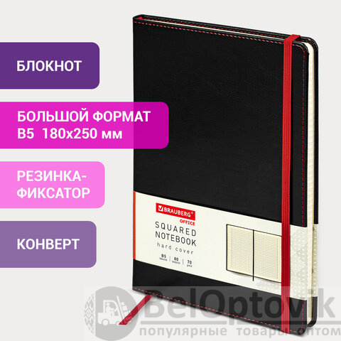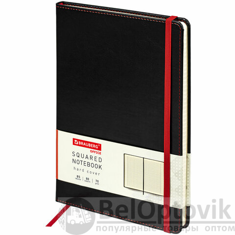 Блокнот БОЛЬШОЙ ФОРМАТ (180х250 мм) B5, BRAUBERG "Office", под кожу 80 л., клетка, черный, 113309