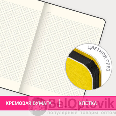 Блокнот БОЛЬШОЙ ФОРМАТ (180х250 мм) B5, BRAUBERG "Metropolis Mix", под кожу, 80 л., клетка, желтый, 113311