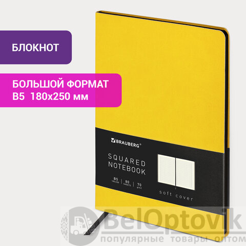 Мягкая интегральная обложка стилизована под кожу. Имеет закругленные уголки. Подходит для горячего тиснения. 80 листов позволят зафиксировать большой объем информации. Линовка блока в клетку (5х5 мм) дает возможность аккуратно заполнить цифровые значения, а также нанести чертежные зарисовки. Внутренний блок выполнен из офсета тонированного цвета плотностью 70 г/м2 и крепится к обложке с помощью книжного переплета. Срез и форзац блокнота окрашены на контрасте цвета обложки, что придает блокноту изысканность и шарм. Дополнением является закладка-ляссе, с помощью которой при необходимости можно быстро открыть нужную страницу. Формат блокнота В5 (180х250 мм) позволит владельцу поместить его в кейс или сумку малых габаритов.