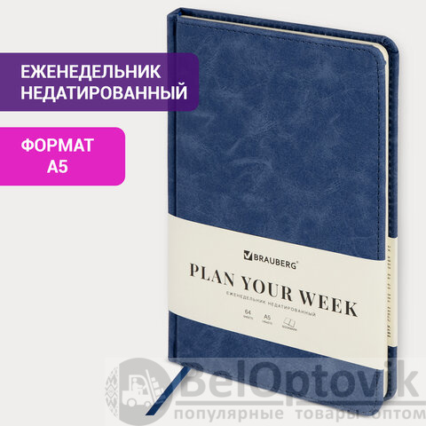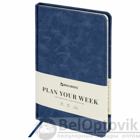 Еженедельник недатированный А5 145х215 мм BRAUBERG "Status", под кожу, 64 л., темно-синий, 113371
