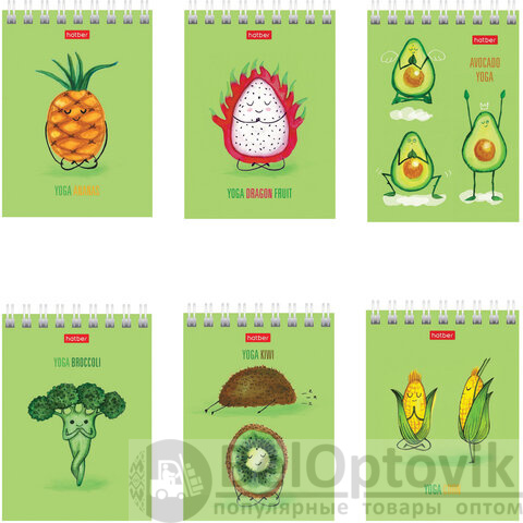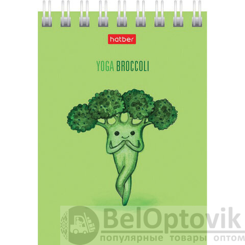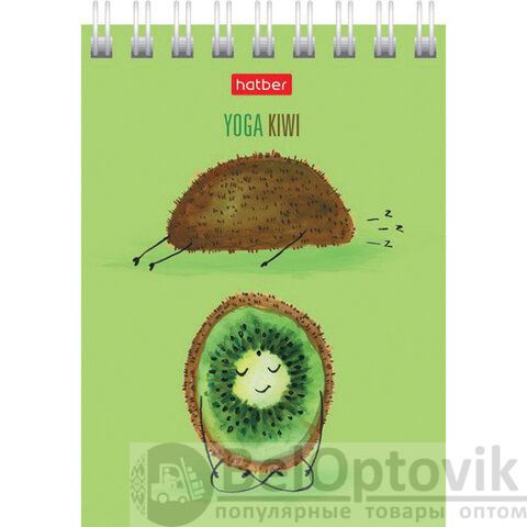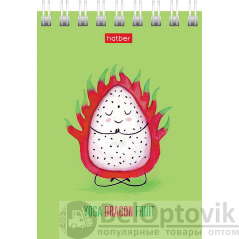 Блокнот МАЛЫЙ ФОРМАТ А7 75х105 мм, 60 л., гребень, картон, клетка, HATBER, "Йога-Фитнес", 60Б7В1гр