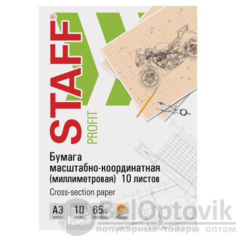 Масштабно-координатная бумага STAFF предназначена для выполнения чертежно-графических работ карандашом или тушью. Применяется при создании инженерных схем и чертежей, планов и карт, а также при рисовании выкройки.