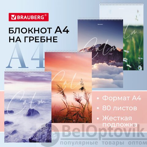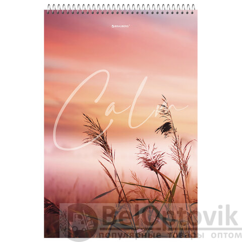 Блокнот БОЛЬШОЙ ФОРМАТ А4 198х297 мм, 80 л., гребень, жесткая подложка, клетка, BRAUBERG, "Calm", 114357