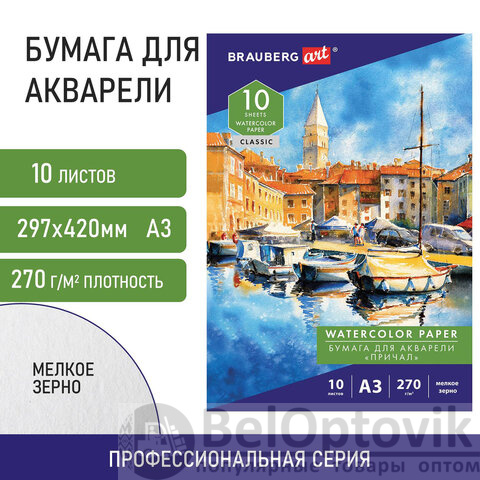 Бумага для акварели BRAUBERG ART "CLASSIC" содержит набор листов, специально предназначенных для рисования всеми видами водорастворимых красок.