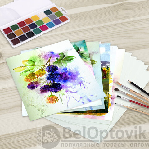 Бумага для акварели BRAUBERG ART "CLASSIC" содержит набор листов, специально предназначенных для рисования всеми видами водорастворимых красок.