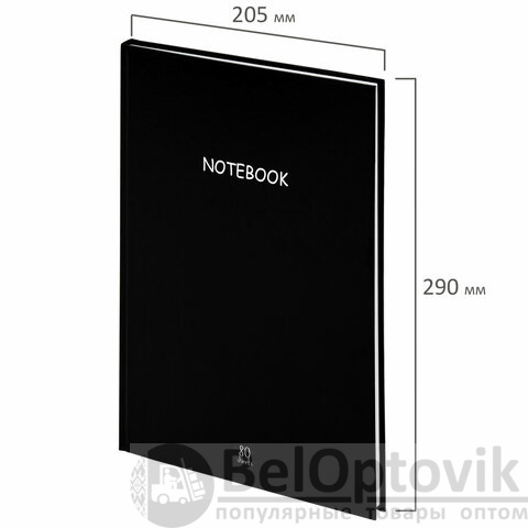 Блокнот БОЛЬШОЙ ФОРМАТ (205х290 мм) А4, 80 л., твердый, клетка, STAFF, "Black", 114403