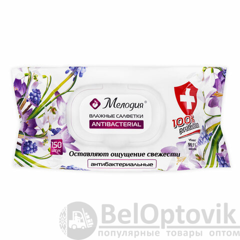 Антибактериальные влажные салфетки МЕЛОДИЯ эффективно и бережно очищают кожу рук, оставляя длительное ощущение свежести и комфорта. Уничтожают 99,9% микробов. Не содержат этиловый спирт. Подходят для всех типов кожи.
