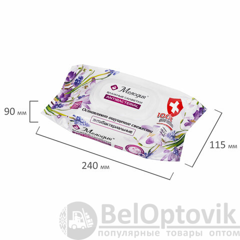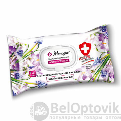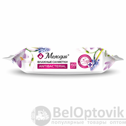 Салфетки влажные 150 шт., АНТИБАКТЕРИАЛЬНЫЕ, с пластиковым клапаном, МЕЛОДИЯ, 115226