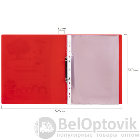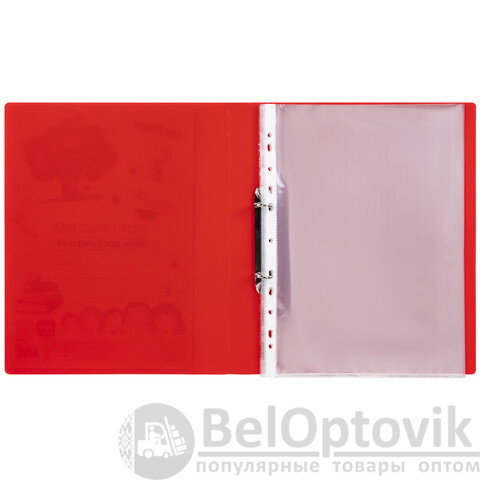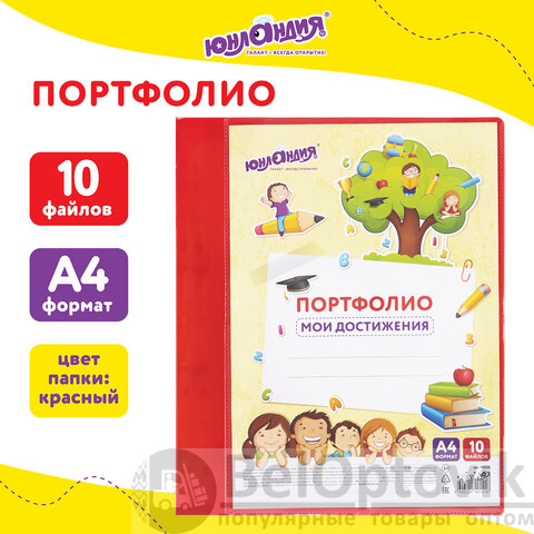 Папка для портфолио школьника/дошкольника, А4, 2 кольца, 10 файлов, красный пластик, ЮНЛАНДИЯ, 115235
