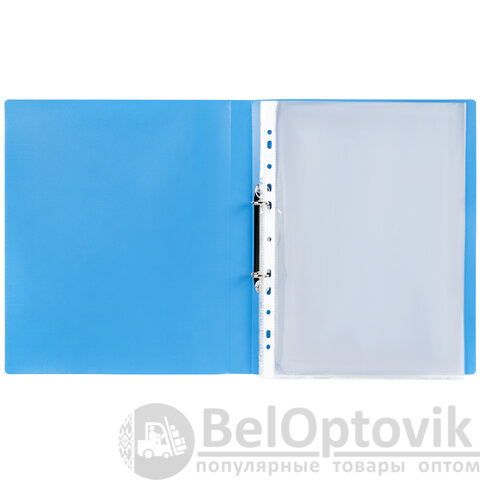 Папка для портфолио оснащена 2 металлическими кольцами, прозрачным карманом для персональной обложки и комплектом из 10 файлов плотностью 25 мкм. Полезный диаметр колец - 20 мм. Изготовлена из качественного жесткого пластика. Фактура папки: диагональ. Цвет: синий. Индивидуальная упаковка: пакет с клейким краем.