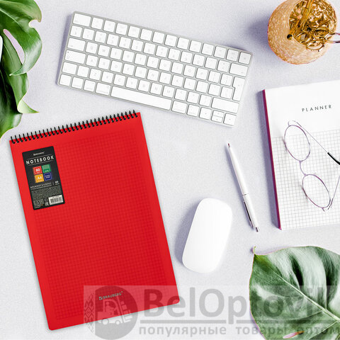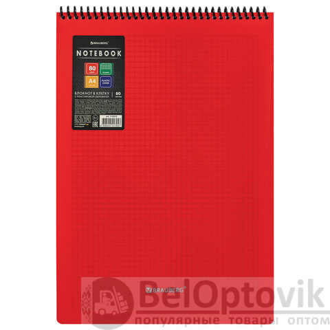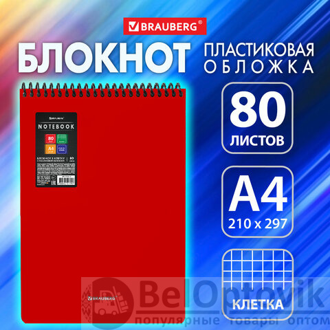 Блокнот БОЛЬШОГО ФОРМАТА А4, 80 л., обложка пластик, клетка, BRAUBERG "Metropolis", КРАСНЫЙ, 115573