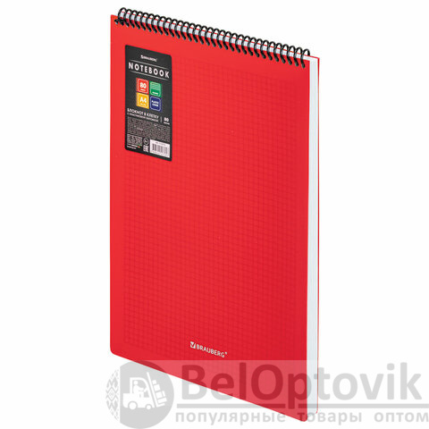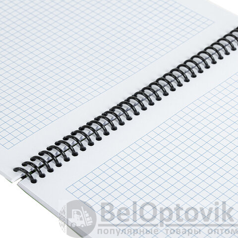 Блокнот формата А4 на спирали содержит 80 листов с линовкой в клетку, что позволяет зафиксировать большой объем нужной информации. Имеет верхнее расположение переплета. Обложка выполнена из пластика, что делает блокнот более износоустойчивым. Внутренний блок состоит из белой офсетной бумаги плотностью 70 г/м2.