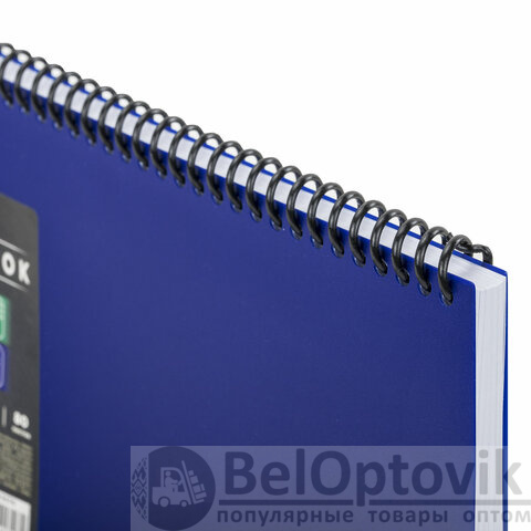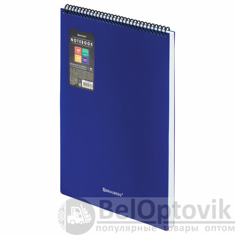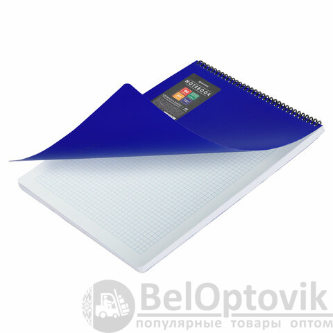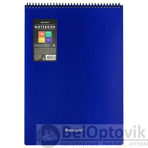 Блокнот формата А4 на спирали содержит 80 листов с линовкой в клетку, что позволяет зафиксировать большой объем нужной информации. Имеет верхнее расположение переплета. Обложка выполнена из пластика, что делает блокнот более износоустойчивым. Внутренний блок состоит из белой офсетной бумаги плотностью 70 г/м2.