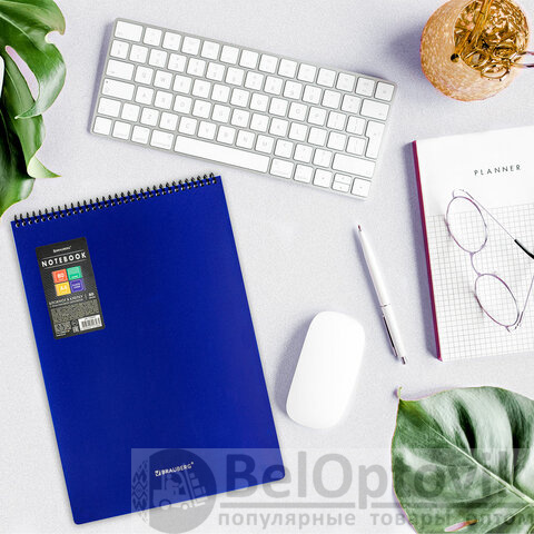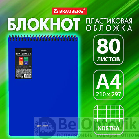Блокнот БОЛЬШОГО ФОРМАТА А4, 80 л., обложка пластик, клетка, BRAUBERG "Metropolis", СИНИЙ, 115574