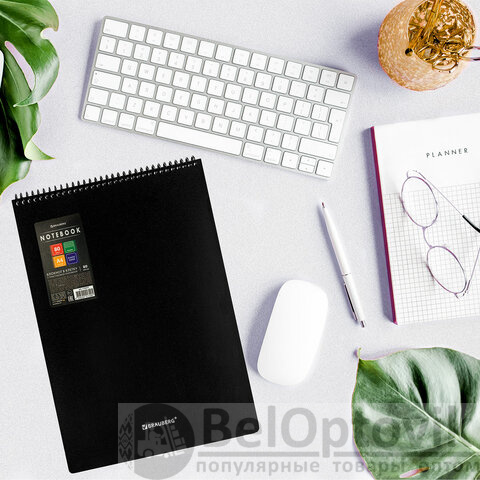 Блокнот БОЛЬШОГО ФОРМАТА А4, 80 л., обложка пластик, клетка, BRAUBERG "Metropolis", ЧЕРНЫЙ, 115577