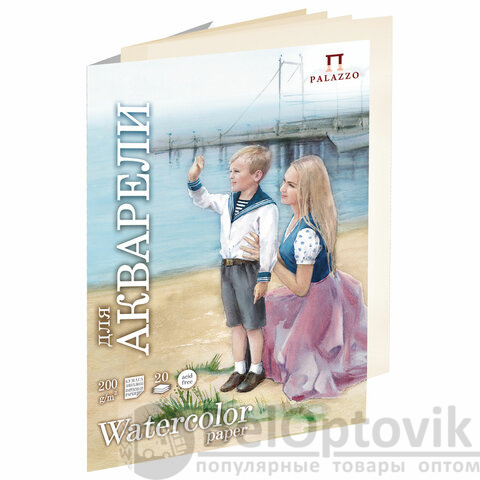 Папка для акварели БОЛЬШАЯ А3, 20 л., 200 г/м2, бумага молочного цвета ГОЗНАК, "Морячка", П-2668