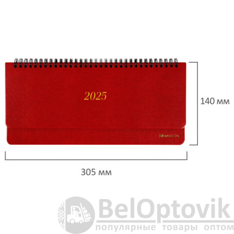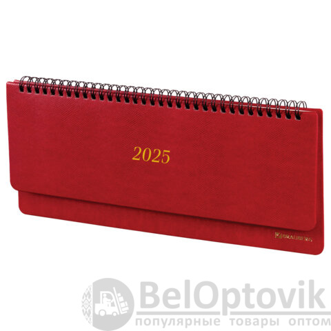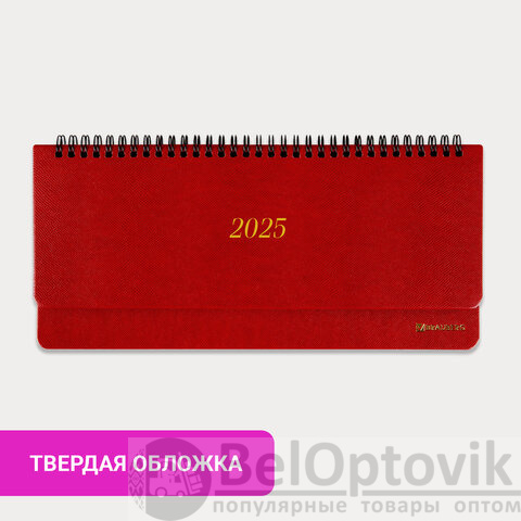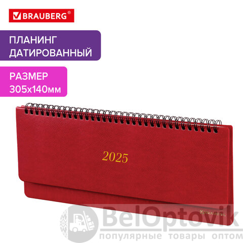 Планинг датированный 2025 305х140 мм BRAUBERG "Iguana", под кожу, красный, 115694