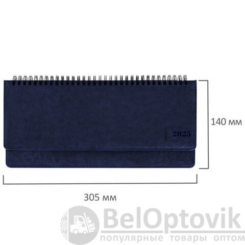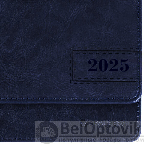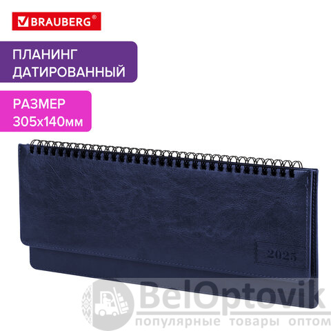 Планинг датированный 2025 305х140 мм BRAUBERG "Imperial", под кожу, синий, 115697