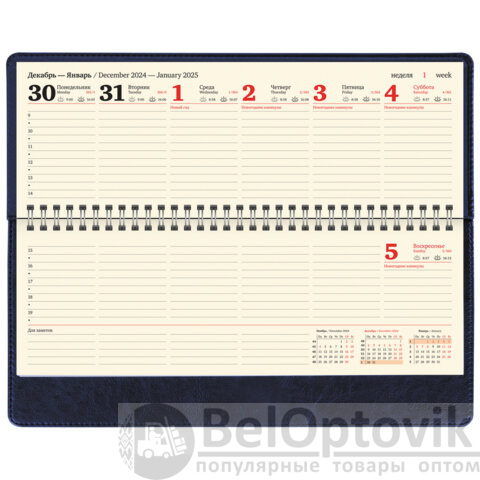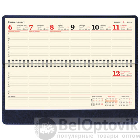 Внутренний блок содержит 60 листов офсетной бумаги кремового цвета плотностью 70 г/м2. Обложка из экокожи и твердый переплет обеспечивают долгий срок службы. Для заметок в планинге имеется 11 страниц в конце внутреннего блока. Подходит для горячего тиснения. Скрепление осуществляется с помощью евроспирали. Размер изделия – 305х140 мм.