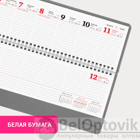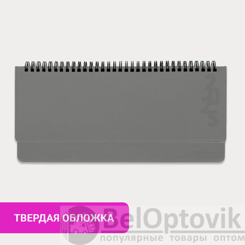 Внутренний блок содержит 60 листов офсетной бумаги белого цвета плотностью 70 г/м2. Обложка из экокожи и твердый переплет обеспечивают долгий срок службы. Для заметок в планинге имеется 11 страниц в конце внутреннего блока. Подходит для горячего тиснения. Скрепление осуществляется с помощью евроспирали. Размер изделия – 305х140 мм.