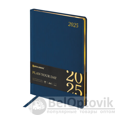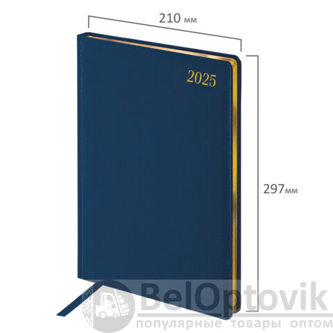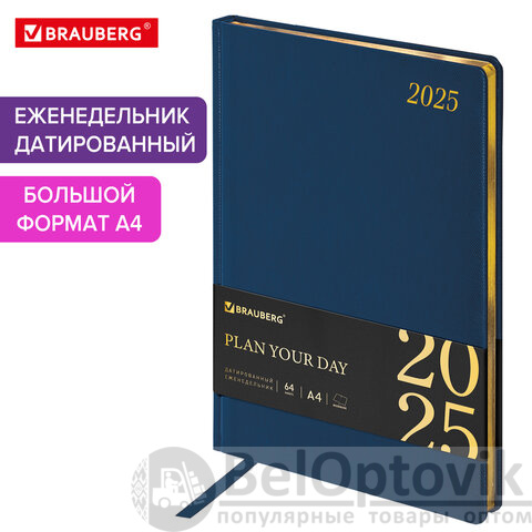 Еженедельник датированный 2025, 210х297 мм, А4, BRAUBERG "Iguana", под кожу, синий, 115949