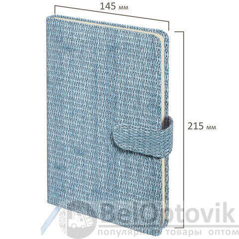 Внутренний блок включает 64 листа тонированной бумаги плотностью 70 г/м2. Благодаря стандартному формату А5 еженедельник удобно использовать как в офисе, так и на выездных деловых встречах. Твердая обложка, стилизованная под кожу с текстурной выработкой, фиксируется магнитной застежкой, поэтому еженедельник не откроется в сумке или портфеле и страницы не помнутся. Подходит для горячего тиснения. Дополнением является закладка-ляссе, с помощью которой при необходимости можно быстро открыть еженедельник на нужной странице. Для заметок в еженедельнике имеется 7 страниц в конце внутреннего блока. Помимо прочего, еженедельник снабжен обширным справочным материалом. Выполнен в благородном голубом цвете.