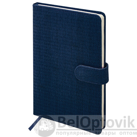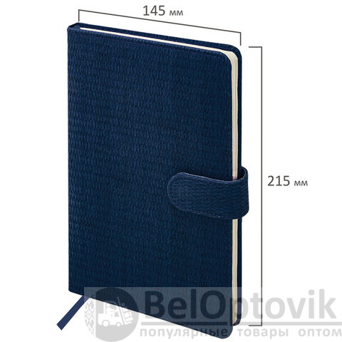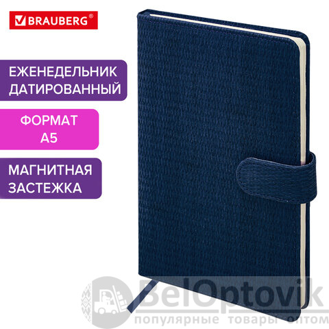 Внутренний блок включает 64 листа тонированной бумаги плотностью 70 г/м2. Благодаря стандартному формату А5 еженедельник удобно использовать как в офисе, так и на выездных деловых встречах. Твердая обложка, стилизованная под кожу с текстурной выработкой, фиксируется магнитной застежкой, поэтому еженедельник не откроется в сумке или портфеле и страницы не помнутся. Подходит для горячего тиснения. Дополнением является закладка-ляссе, с помощью которой при необходимости можно быстро открыть еженедельник на нужной странице. Для заметок в еженедельнике имеется 7 страниц в конце внутреннего блока. Помимо прочего, еженедельник снабжен обширным справочным материалом. Выполнен в классическом темно-синем цвете.