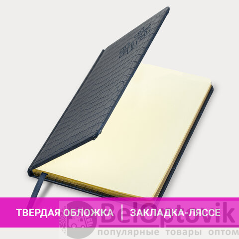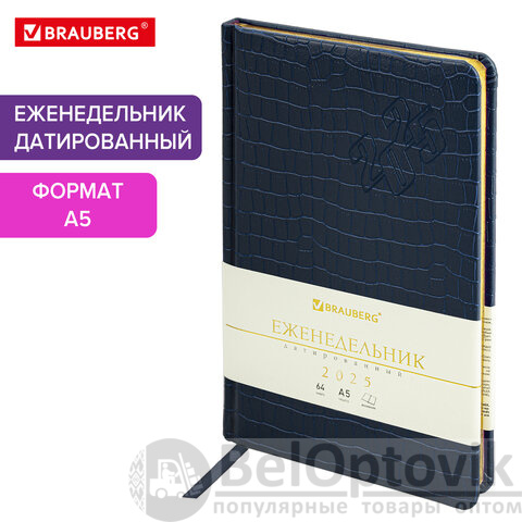 Еженедельник датированный 2025, А5, 145х215 мм, BRAUBERG "Comodo", под кожу, темно-синий, 115957