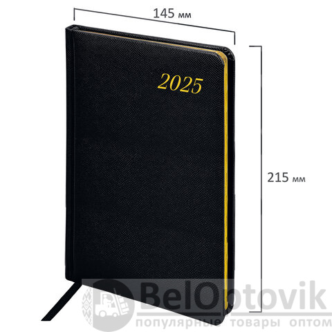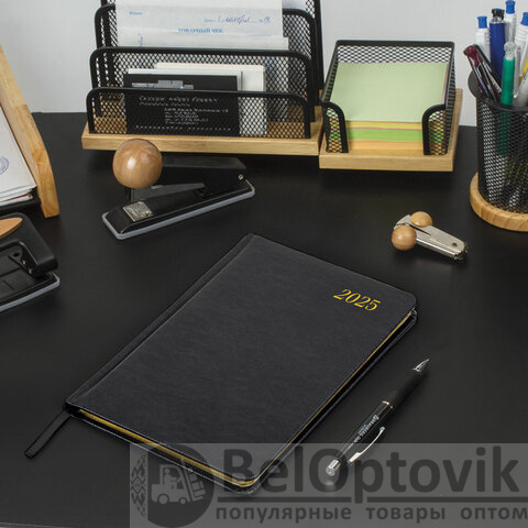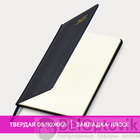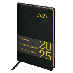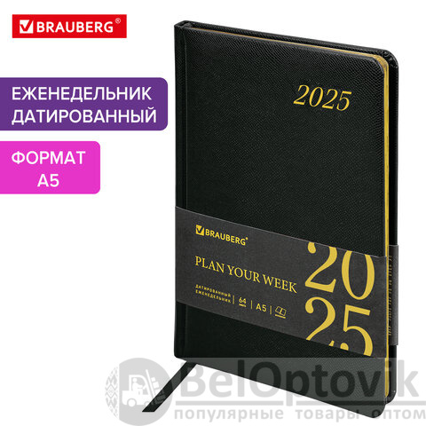 Еженедельник датированный 2025, А5, 145х215 мм, BRAUBERG "Iguana", под кожу, черный, 115961