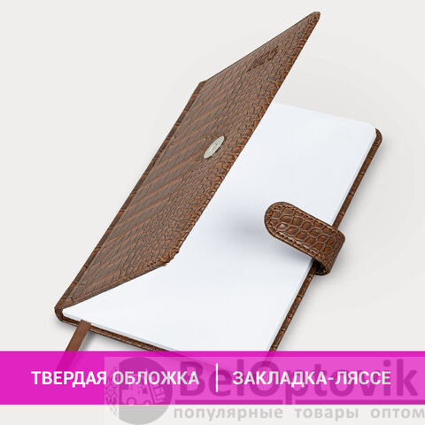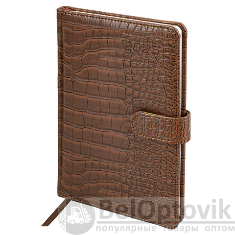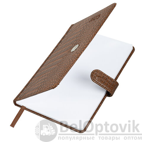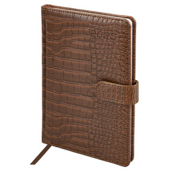 Внутренний блок включает 64 листа белой бумаги плотностью 70 г/м2. Благодаря стандартному формату А5 еженедельник удобно использовать как в офисе, так и на выездных деловых встречах. Твердая обложка, стилизованная под кожу крокодила благородного коричневого цвета, фиксируется магнитной застежкой, поэтому еженедельник не откроется в сумке или портфеле и страницы не помнутся. Подходит для горячего тиснения. Дополнением является закладка-ляссе, с помощью которой при необходимости можно быстро открыть еженедельник на нужной странице. Для заметок в еженедельнике имеется 7 страниц в конце внутреннего блока. Еженедельник снабжен обширным справочным материалом.